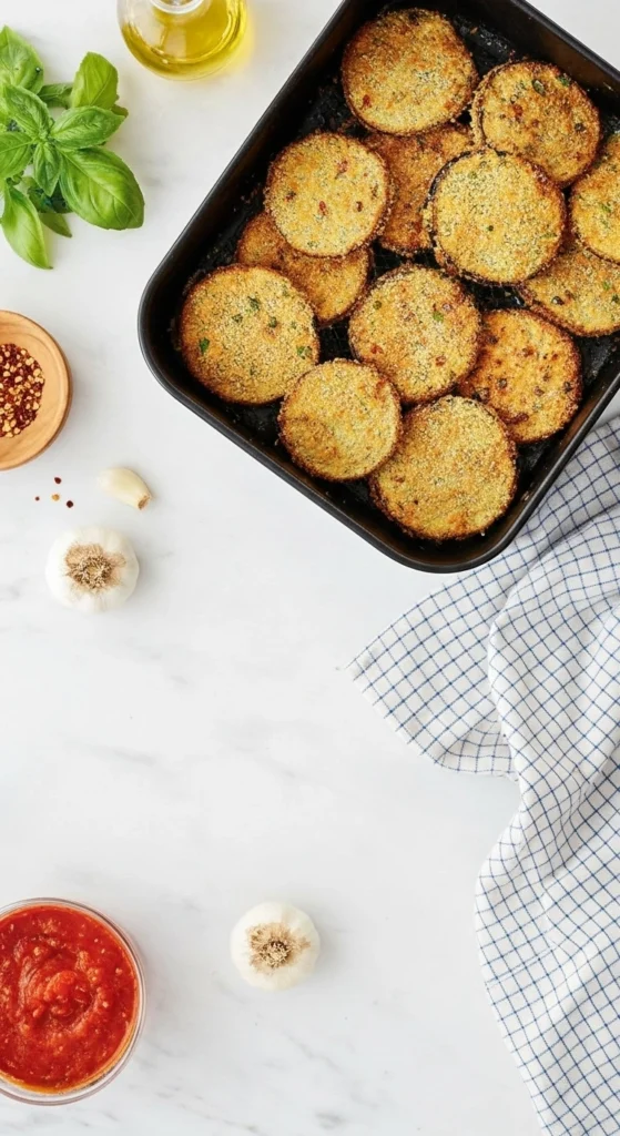 Si vous aimez l’aubergine à la parmesane, vous allez adorer cette version revisitée ! Les tranches d’aubergine sont panées dans un mélange de chapelure panko, de farine d’amande et de parmesan, puis dorées à la perfection à l’Air Fryer.