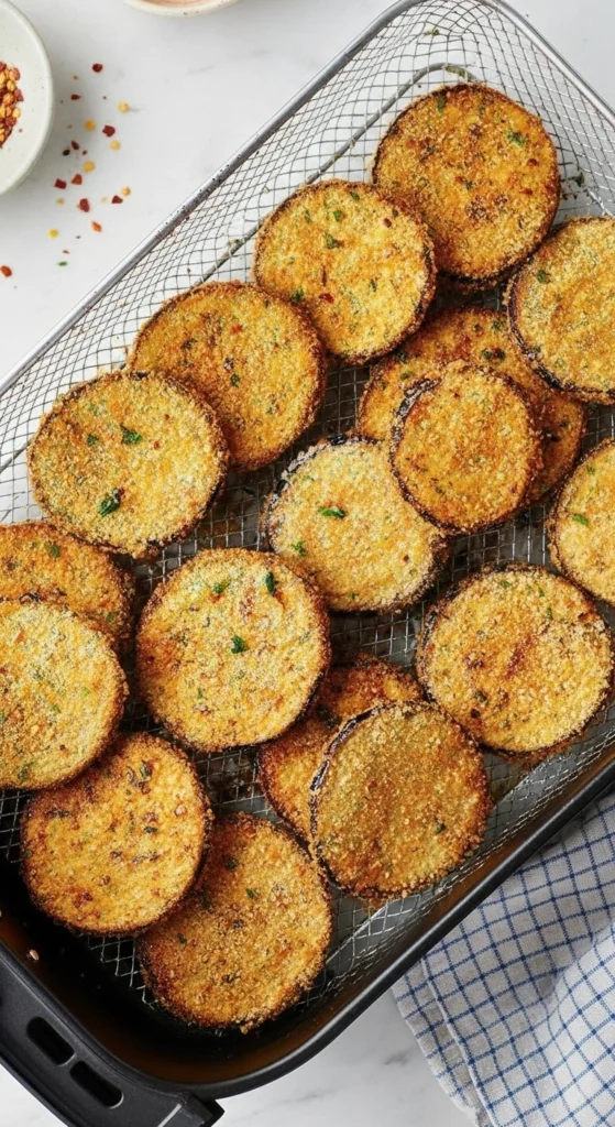 Enrobée d’une croûte de panko et de parmesan, cette aubergine à la friteuse à air (Air Fryer) est croustillante à l’extérieur, fondante à l’intérieur et riche en saveurs légèrement noisettées.