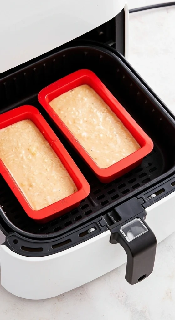 👩🏻🍳 Astuce : Ne remplissez pas trop les moules. Le Air Fryer Banana Bread lève parfaitement, tout comme au four. Laissez environ 1 cm en haut pour obtenir un dôme parfait.