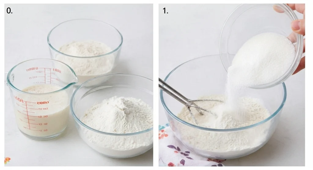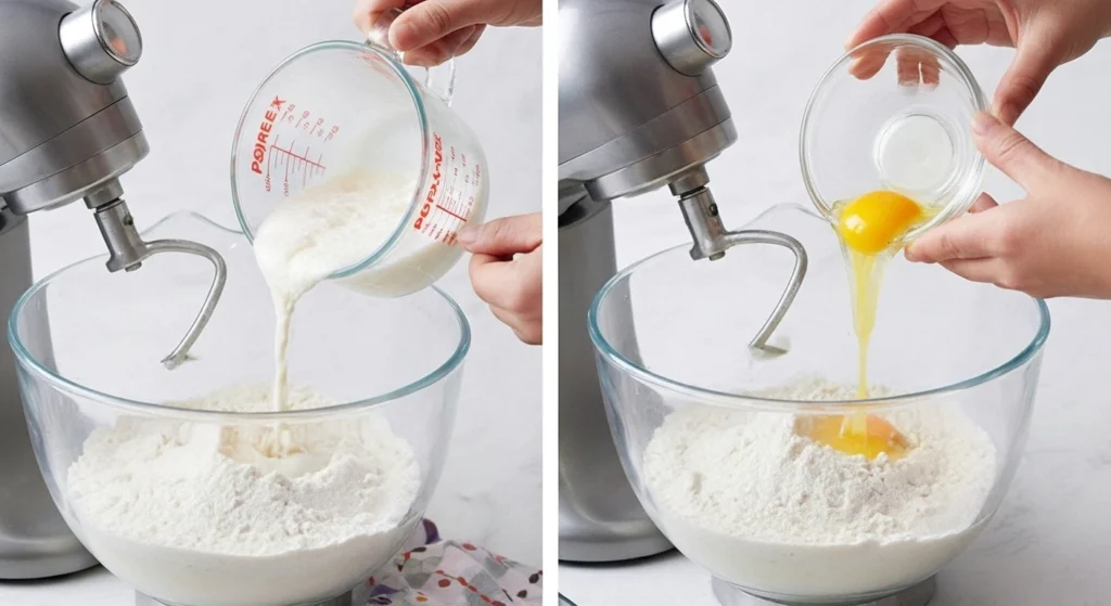 - Ajoutez le mélange de levure dans le bol contenant la farine.