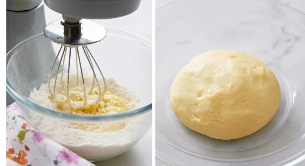 - Mélangez à vitesse lente jusqu’à ce que les ingrédients soient bien incorporés. Augmentez ensuite la vitesse à moyenne-basse et pétrissez jusqu’à obtention d’une pâte lisse et homogène, environ 5 minutes. N’hésitez pas à racler le fond et les bords du bol au besoin.