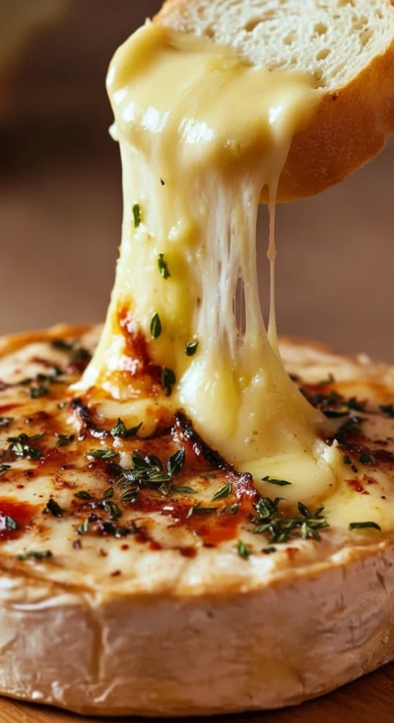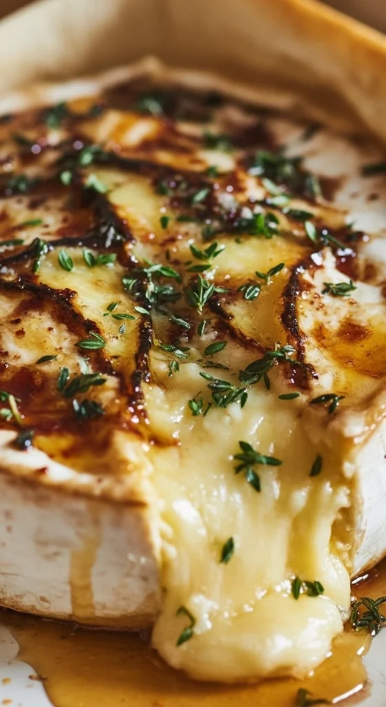 Arrosé de miel et parsemé de thym, il offre une surface sucrée et légèrement croustillante, avec tout le fromage fondu au centre. Un pain chaud et croustillant est indispensable pour y plonger, et pourquoi pas l’accompagner d’un chutney sucré.