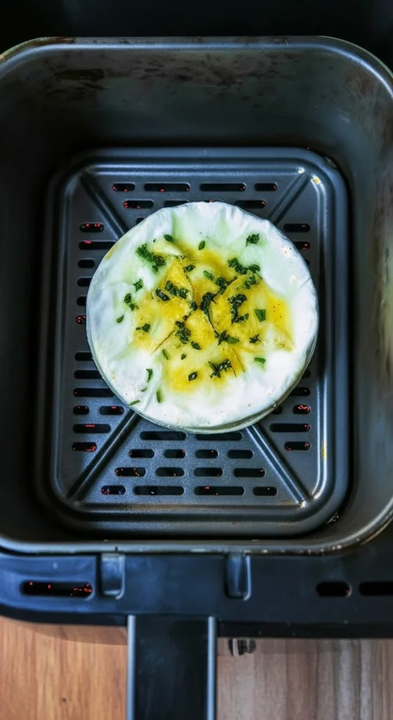- Étape 2 : Placez le camembert dans la friteuse à air préchauffée.