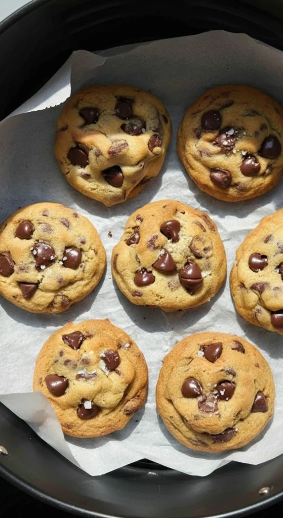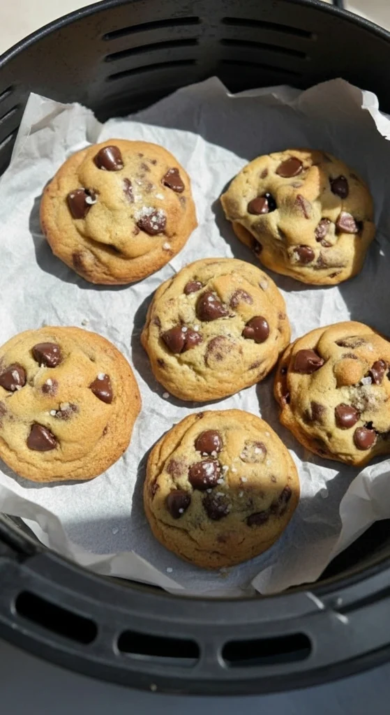 Cette recette de cookies à la friteuse à air (Air Fryer) permet d’obtenir des biscuits épais, moelleux et délicieusement fondants. Prêts en seulement 7 minutes de cuisson, ils ont aussi l’avantage de ne nécessiter aucun œuf !