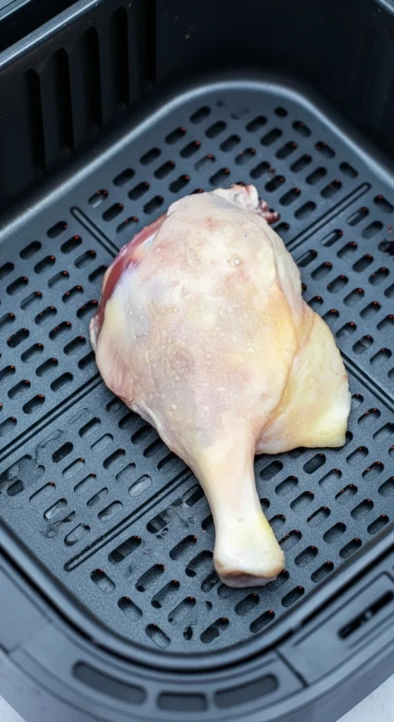 Bien que je n’aie préparé qu’une seule cuisse en testant cette recette, la plupart des friteuses à air standards peuvent en contenir 2, tandis qu’un modèle XL peut en accueillir 3. Si vous en cuisinez davantage, procédez simplement en plusieurs fournées.