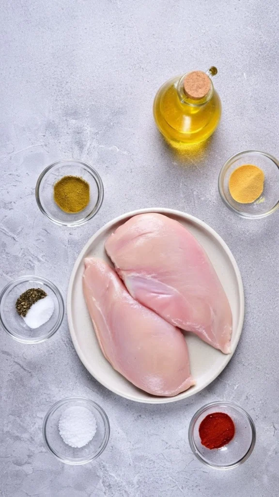 - Filets de poulet désossés et sans peau. Je recommande de choisir des filets de taille similaire pour une cuisson uniforme. J’achète souvent mes filets de poulet chez Costco ou Sam’s Club, présentés en portions de 110 g.