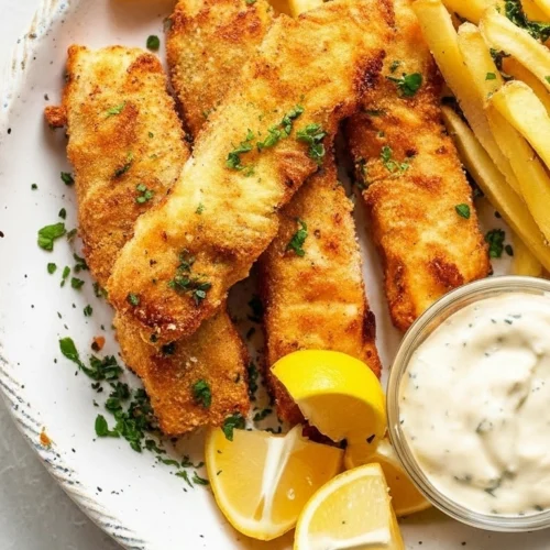 Cette recette de Fish and Chips à l’Air Fryer est une version plus saine d’un plat de restaurant très apprécié. Prêt en quelques minutes, ce cabillaud croustillant est enrobé de panko puis cuit à la friteuse à air pour obtenir un poisson parfaitement cuit sans bain d’huile. Un excellent repas familial pour les soirs de semaine.