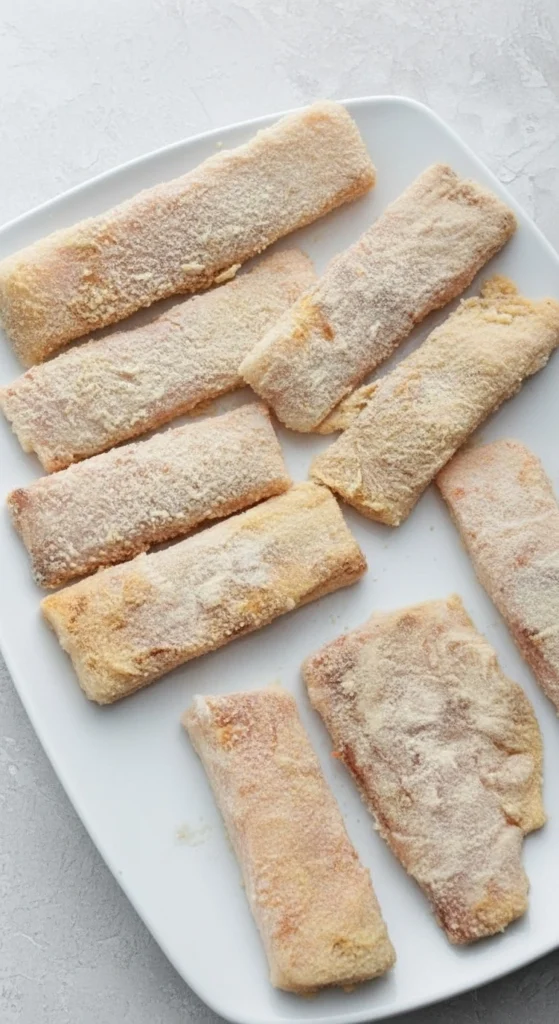 - Œuf : Les lanières de cabillaud sont trempées dans l’œuf pour permettre à la chapelure d’adhérer.