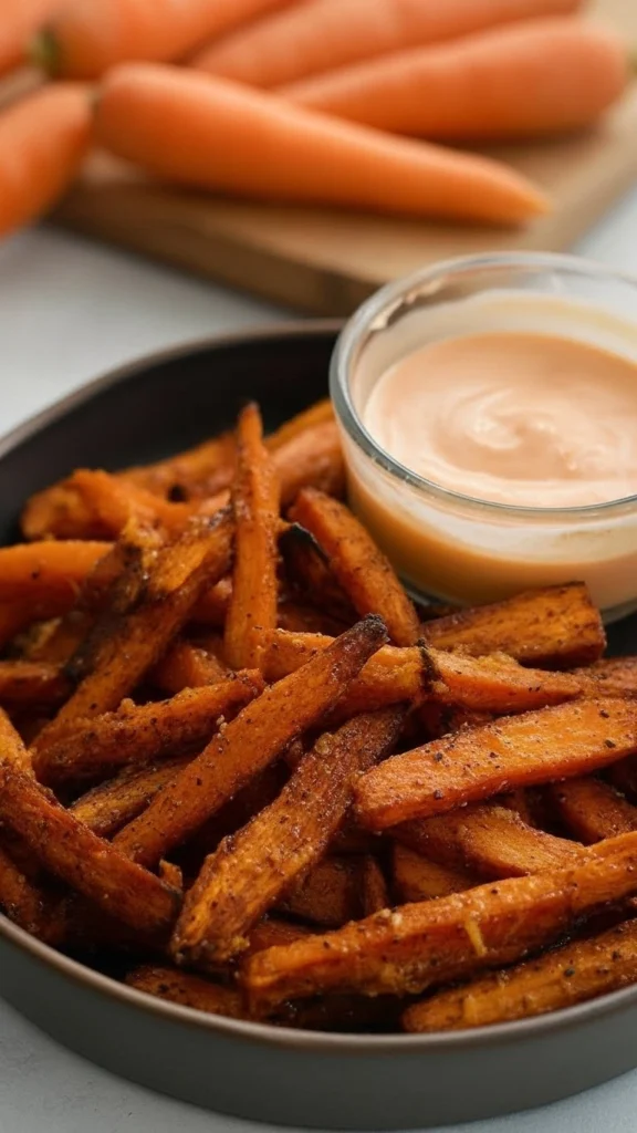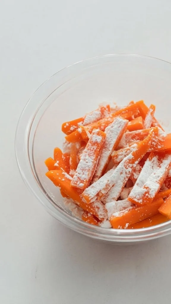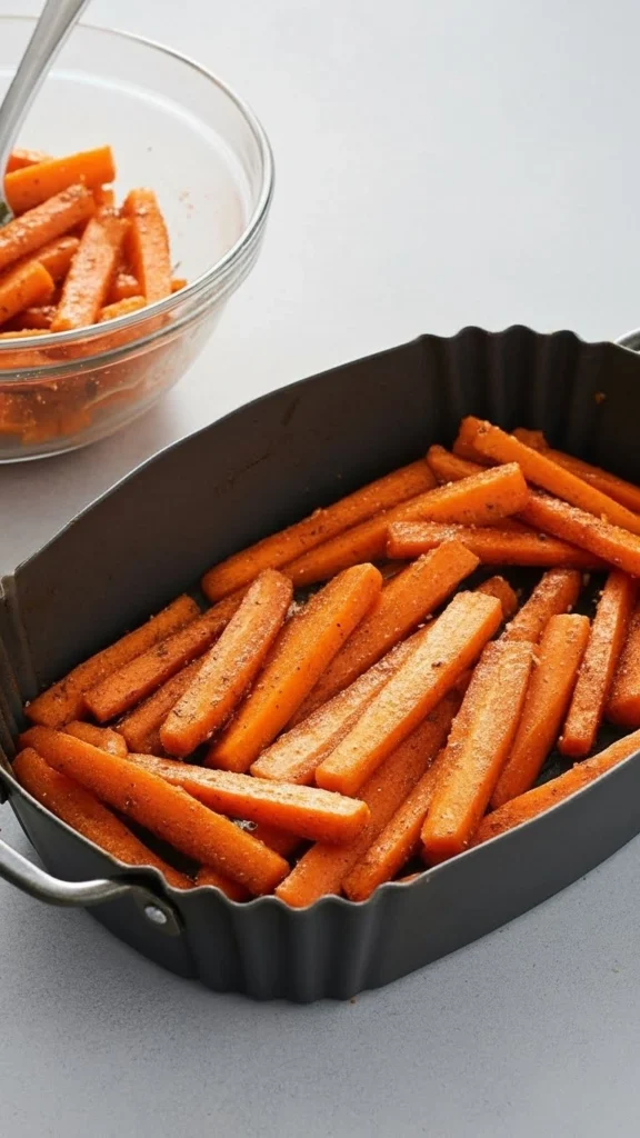 Le secret, c’est la combinaison fécule de maïs + un peu d’huile + l’Air Fryer. Les carottes étant peu aqueuses, elles deviennent naturellement croustillantes sans ramollir.