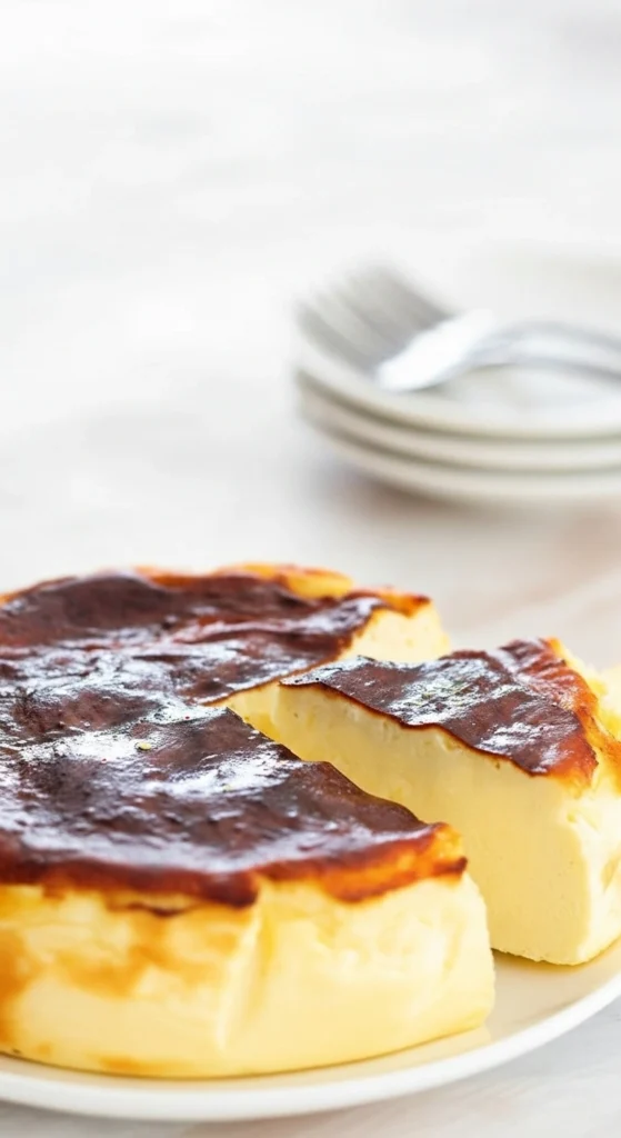 La texture de ce gâteau est très crémeuse, proche de celle d’un cheesecake, avec un extérieur légèrement moelleux et mastiquant.