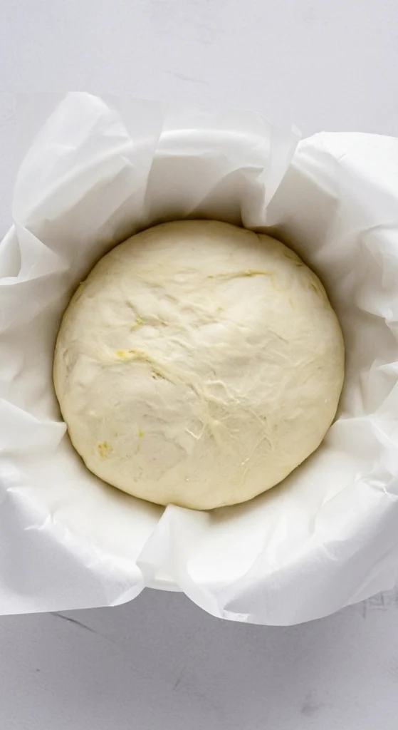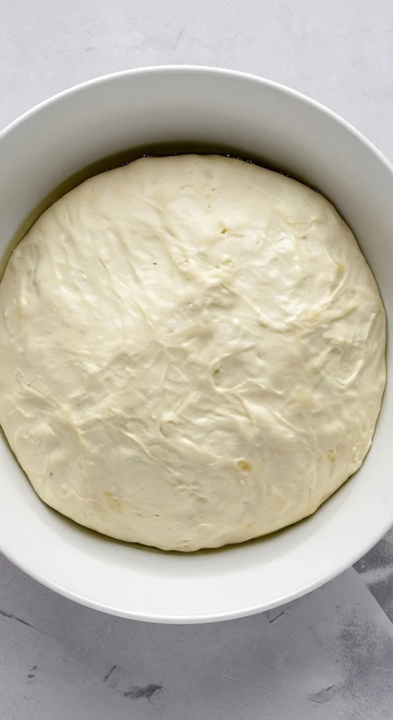 Étape 4 : Mettez la pâte de côté, essuyez le saladier puis badigeonnez-le légèrement d’huile avant d’y replacer la pâte. Couvrez avec un torchon ou du film alimentaire et laissez lever dans un endroit chaud jusqu’à ce qu’elle double de volume.
