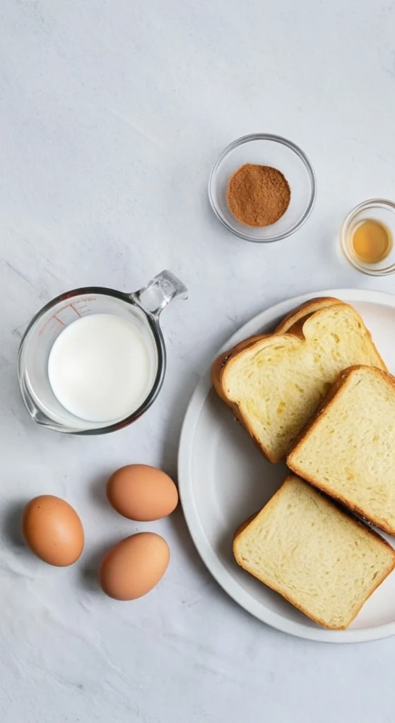 - Pain : la brioche tranchée est idéale pour cette recette. Légèrement sucrée et moelleuse, elle absorbe parfaitement le mélange d’œufs et de lait.