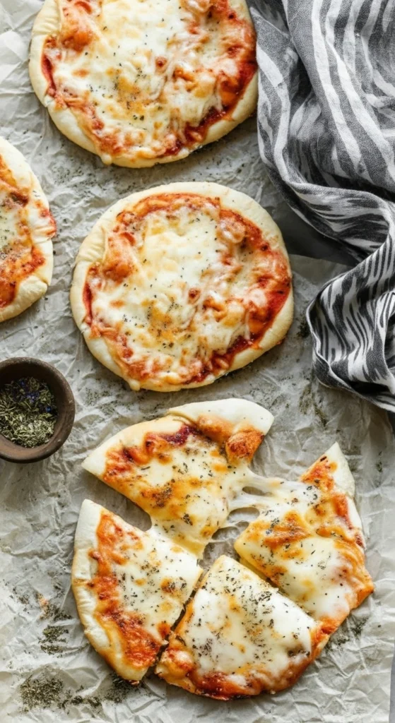 - Pâte à pizza du commerce : Vous pouvez utiliser des petites pâtes toutes prêtes (type Boboli ou pains plats). Dans ce cas, sautez l’étape de précuisson. Ajoutez directement les garnitures puis faites cuire à 185 °C jusqu’à ce que le fromage soit fondu et que la croûte soit croustillante.