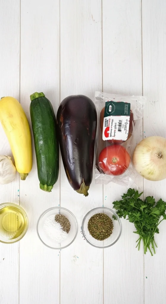 Ingrédients pour la ratatouille à la friteuse à air