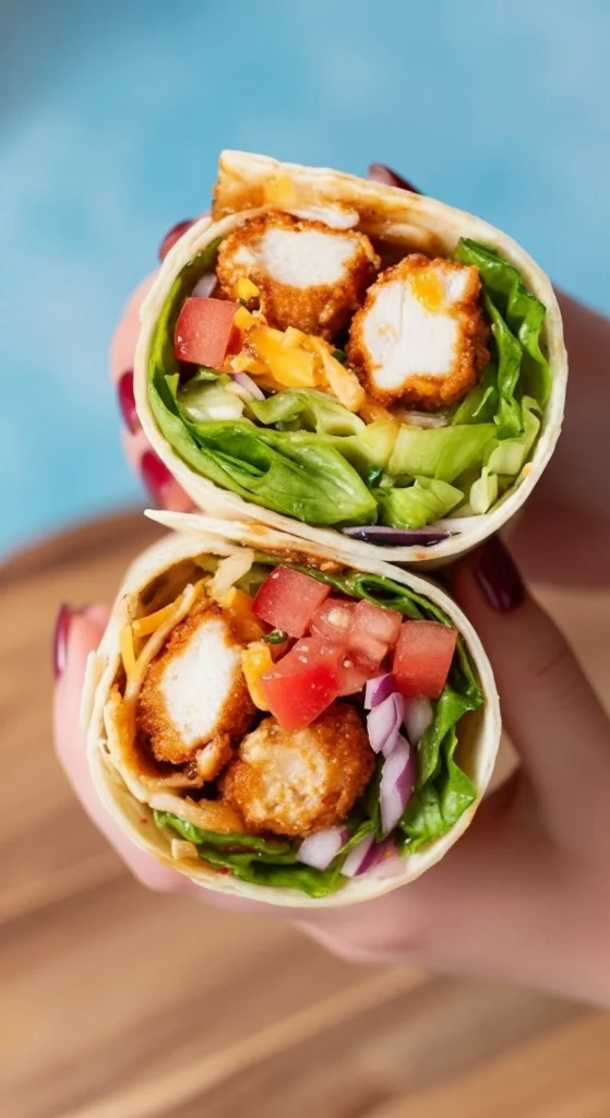 Un wrap croustillant au poulet est une tortilla moelleuse garnie de filets de poulet frits, accompagnés de garnitures comme de la laitue, du fromage, de la tomate et de la mayonnaise. C’est une option populaire considérée comme plus “saine” dans de nombreuses chaînes de fast-food.